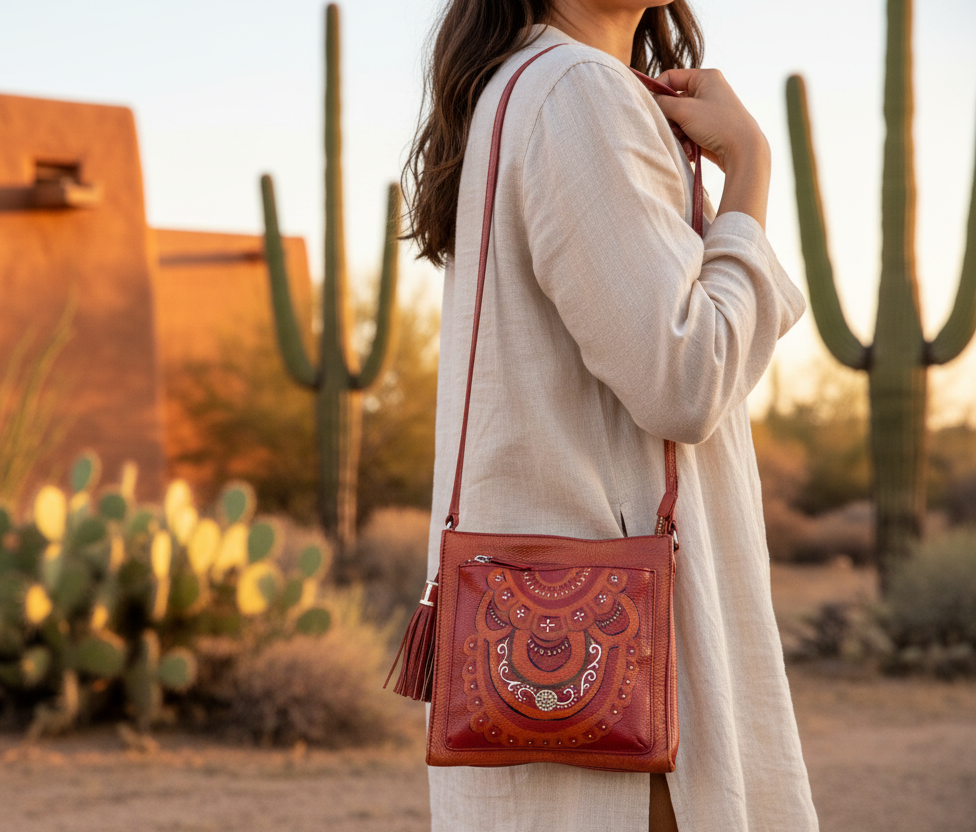 This purse is a one-of-a-kind statement piece, hand-painted with intricate tribal designs and sealed for lasting quality. Multiple pockets, including a spacious main compartment and a separate zipper compartment, this purse effortlessly combines fashion and functionality. Measuring approximately 14" wide and 12" high, it is the perfect accessory for any fashion-forward individual. This gently used purse has been created into another level of art!